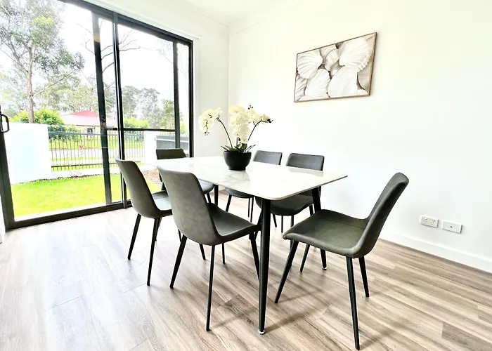 Az Austral Brand New Modern 4 Bedroom Home szálláshelyet kínál, és kocsival 38 percre van a Sydney nemzetkozi repuloter repülőtértől. Ez a villa 2 hálószobával, továbbá tornáccal, kanapéval és íróasztallal rendelkezik a szobákban.